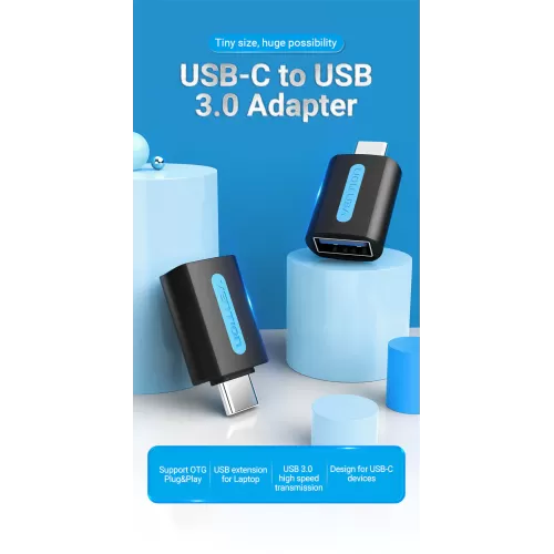 Vention USB-C ke USB 3.0 OTG Adapter (PVC Hitam)